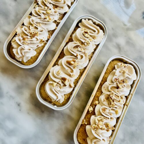 This pumpkin tres leches is made with a sponge cake. Not only does sponge cake absorb all the liquid use in this recipe without making the cake soggy, but it also lends a lightness and fluffiness to the cake that is amazing. The pumpkin flavors come through, since this recipe is not too sweet. Please let me know if you make it! I made 13 mini loaf pans but you can bake it in one 9×13 pan. Enjoy! Recipe might contain affiliate links